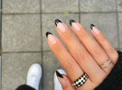 Якщо хочете зробити елегантний, але креативний манікюр, - обирайте чорний френч. Вдало матимуть вигляди також трендові хвилі, "половинки" або різноманітні абстрактні комбінації.