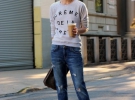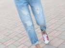 "Такі джинси в жодному разі не повинні бути декоровані, це ж чоловічі брюки! По-друге, носити їх варто на пару розмірів більше, але ніяк не в обтяжку. Жінкам з повними стегнами вони не личать, оскільки в них вони виглядатимуть на кілька розмірів більше. Цього сезону наймодніші джинси-бойфренди з потертостями і прорізами. Одягати їх слід із взуттям на підборах і жіночними блузами. Це додасть образу жіночності та витонченості. Для практичності допускається надіти взуття на танкетці. Це теж красиво", - каже дизайнер Тимур Гучкаєв.