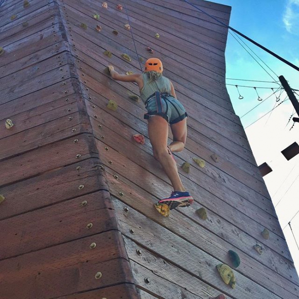 "Екс-янгол" бренду Victoria's Secret практикує йогу тричі на тиждень. Вона вважає це найкращим способом пропрацювати навіть найдрібніші м'язи. Заняття проходять на природі.