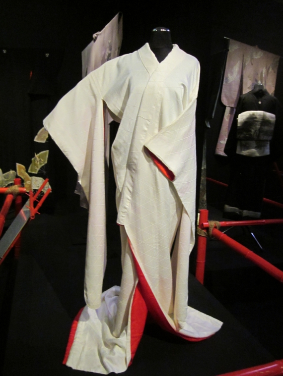 Серед кількох десятків кімоно, які представлені на виставці — дитячі, весільні, солдатські і навіть кімоно для здійснення харакірі.