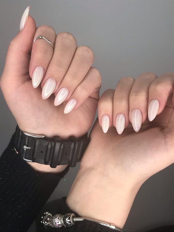 Щоб урізноманітнити французький манікюр, можна обрати як альтернативу молочну базу. Вона прозоріша від білого гель-лаку, але насиченіша, ніж гель. Соковитості додасть рожевий відтінок.
