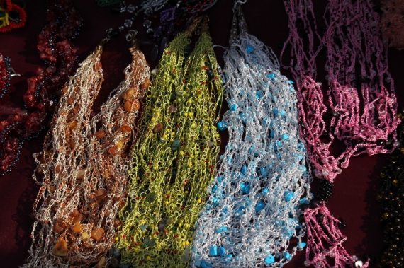 "Особливо популярні кольє у біло-срібно-рожевій гаммі. Буває дзвонять наречені, питають, чи не маю чогось цікавого. Бо купили китайську прикрасу, випадково намочили, вона почорніла та облізла. А бісер, сам по собі — це скло. Зносу йому немає. І до того ж, нейтральний матеріал", - розповів Поліщук.