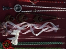 "Виплітаю наче ажурні, у королівському стилі. Шикарно виглядають на голій шиї. Під такі часто замовляють квіти з бісеру для прикрашання весільної зачіски. Діадеми вже багатьом набридли", - зауважив майстер.