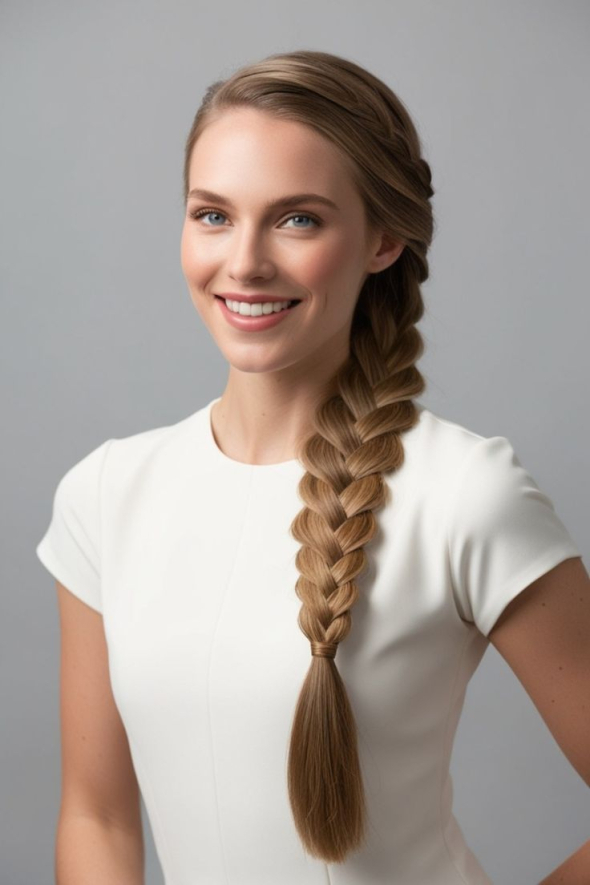 Ідеальний варіант для тих, хто хоче зібрати волосся, але не надто строго. Коса набік виглядає ніжно, особливо з легким декором.