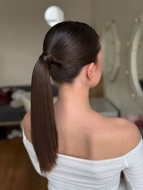 Високий або низький хвіст з ідеально пригладженим волоссям має професійний та фотогенічний вигляд.