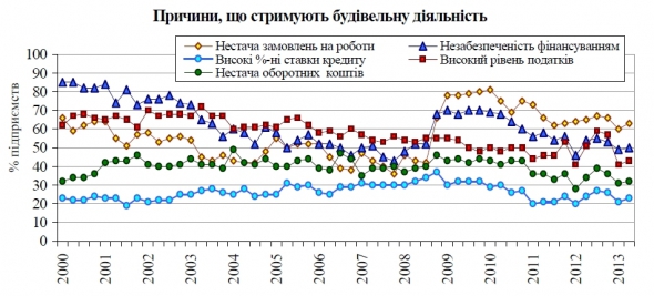 Очікується підвищення впливу таких стримуючих будівельну діяльність факторів, як нестача замовлень на роботи, високий рівень податків, високі процентні ставки кредиту та одночасне зменшення впливу несприятливих погодних умов.