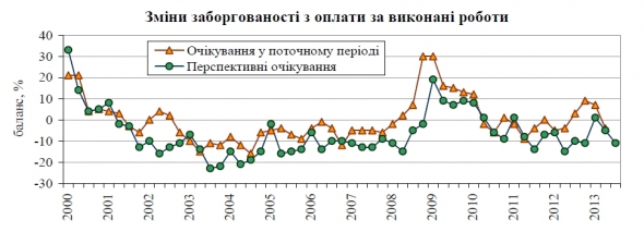Респонденти прогнозують скорочення обсягів заборгованості з оплати за виконані будівельні роботи. Очікування на ІІІ квартал 2013 року порівняно з ІІ кварталом свідчать про подальше зменшення обсягів заборгованості з оплати за виконані будівельні роботи.