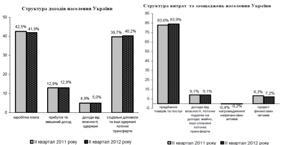 Витрати населення у ІІ кварталі 2012 року порівняно з аналогічним періодом попереднього року збільшились на 16,3%. Приріст заощаджень становив 24,457 млрд грн.