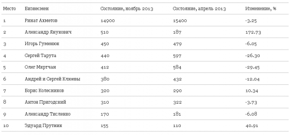 У листопаді 2013 року Forbes оцінив його статки в $510 млн. У квітні капітал старшого сина українського президента був майже втричі менший - $187 млн.