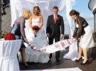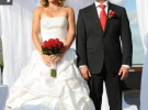 Весілля відбулося в готелі "Прем'єр-Палас" - з церемонією на даху і вечіркою в ресторані "Теракота". На нареченій була сукня Carolina Herrera, привезене нею з Америки, а також кольє, прикрашене діамантами, рубінами і перлами, вартістю 20.000 доларів. Кольє подарував Каті наречений.