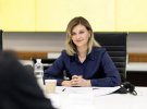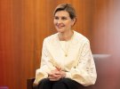 Того ж місяці Олена у Києві зустрілась з мером Парижа - Анн Ідальго. Одягла штанний костюм сіро-зеленого кольору. Образ доповнила поясом на талії і масивними сережками.