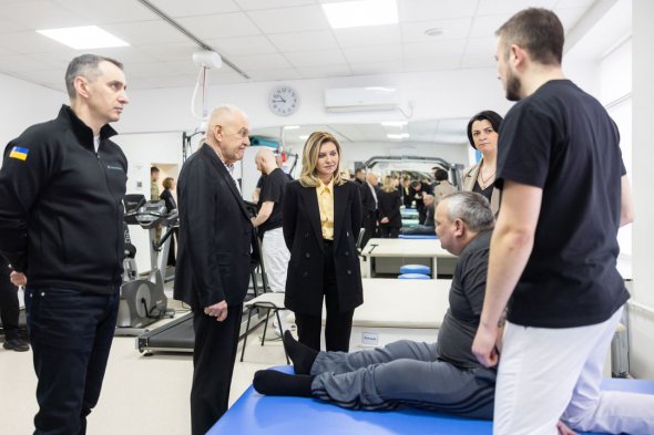 У лютому Зеленська приїхала на Тернопільщину в простому але елегантному образі. Вона одягла чорний класичний костюм, який розбавила жовтою сорочкою.