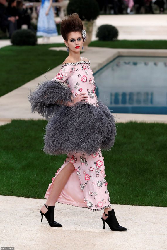 Модель 17-річна Кайя Гербер, донька Сінді Кроуфорд, взяла участь у грандіозному показі модного дому Chanel. У якості локації організатори використали паризький замок Grand Palais. На показі зібрались вершки паризького шоу-бізу.