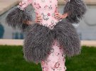 Кайя була однією із провідних моделей. На доріжку вийшла у рожевій сукні, прикрашеній об'ємними квітами і сірим пір'ям.