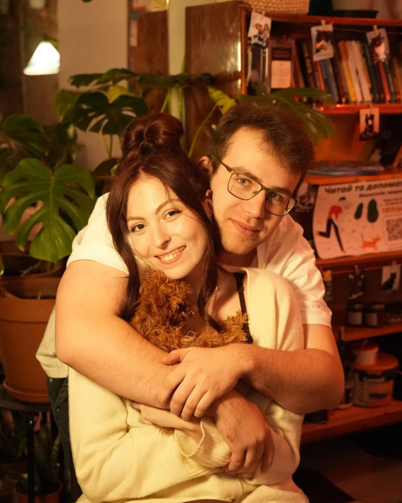 На кадрі, опублікованому в Instagram, закохані позували на тлі зелені та книг.