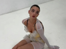Перед камерою модель постала в коротких сукнях з відвертим декольте, шубі та штанах.