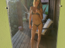 Одягла суцільний купальник чорного кольору, який підкреслив її ідеальну фігуру. Також приміряла бордовий комплект і бікіні з хижим принтом.