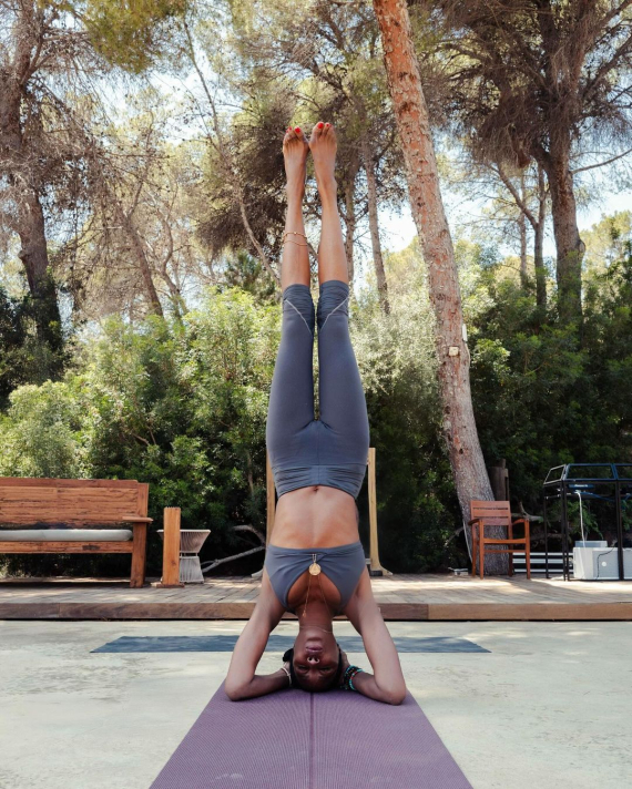 У своєму Instagram зірка опублікувала кадри, на яких займалася йогою під відкритим небом.