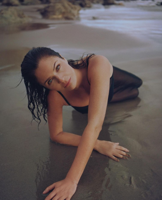 На кадрах, опублікованих в Instagram, зірка позувала в мокрій сукні-комбінації на піску.