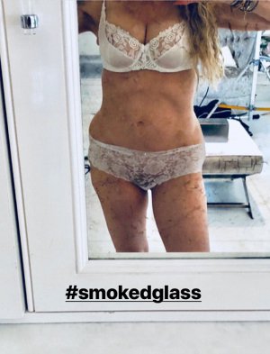 Влітку Мадонні виповнилося 60 років, а 29 серпня, вона запостила в Instagram пікантний знімок, на якому позує в мереживній білизні. На перший погляд здається, що тіло співачки покрите судинної сіткою (або дивними темними плямами), проте вся справа в "димному" дзеркалі зі специфічним малюнком.