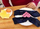 Жінка вирішила віддячити коханому й також підготувала сюрприз. Вона подала йому на сніданок сир та яйце і дві шкарпетки.