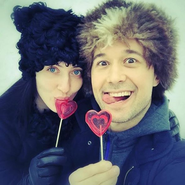 Сніжана опублікувала фотоспогад 7-річної давнини, де вона із чоловіком на фоні зимового пейзажу облизують яскраві карамельні цукерки.