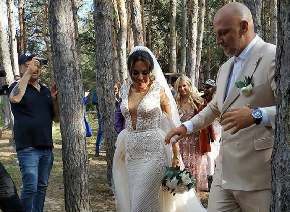 Офіційно пара одружилася у Києві. Церемонія відбувалася у одному із заміських ресторанів. На подію подружжя запросило Тіну Кароль, Олю Полякову, Машу Єфросініну, Юрія Горбунова, Катю Осадчу та інших селебріті.