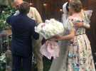 Потап був одягнений в костюм бежевого кольору та білі кросівки. Каменських обрала сукню з пишною спідницею і довгим шлейфом.