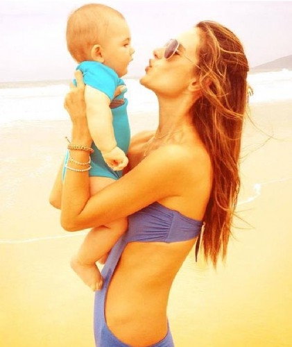 Бразильська модель Алессандра Амбросіо не так давно народила сина. Декретна відпустка не заважає їй проводити час з малюком на пляжі.