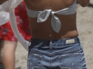 "Янгол" Victoria's Secret продемонструвала підтягнуту фігуру. У сріблястому бікіні і джинсових шортах 30-річна топ-модель виглядала наче за роботою на черговому фотосеті.