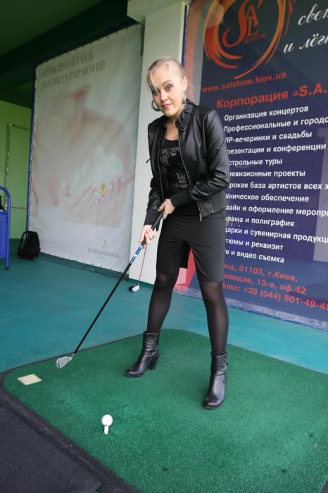 "Я вперше граю у гольф на шпильках. Прийшла сюди, щоб зустрітися з дівчатами, бо дуже рідко з ними бачуся. Мені більше подобається грати у справжній гольф. Коли ти бачиш на траві лунку і знаєш, що туди треба влучити. Тут все одноманітно. Б"єш м"яч і не знаєш, куди він має влучити", - розповіла кореспонденту Gazeta.ua співачка і художниця Анжеліка Рудницька.