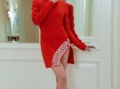 Зірка позувала в в елегантних сукнях червоного та чорного кольорів, які підкреслили її стрункі ноги. Кадри виклала в Instagram.