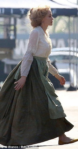 Зірка була з білявим волоссям та у пишній сукні. В такому образі по моді 1900-х років, глядач побачить Джолі у фантастичній стрічці Come Away.