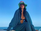 Дівчина опублікувала нещодавно нові світлини із відпочинку. Модель засмагає на пляжі, ховаючись від надто спекотного сонця під парасолею. На красуні теракотовий роздільний купальник. Верхня частина незвичайно переплітається на грудях. Це додає образу еротики та індивідуальності.