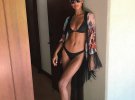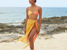 Раніше вона показала, як відпочивала на пляжі. Знаменитість постала в жовто-помаранчевому купальнику й парео. Доповнила образ коштовностями: золотим намистом і декількома браслетами.