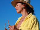 Образ доповнила босоніжками на масивній платформі, капелюхом, вишуканими прикрасами та сонцезахисними окулярами.
