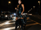 На кадрах, опублікованих в Instagram, блогерка позувала серед нічного міста. Поряд стояв пес породи доберман.
