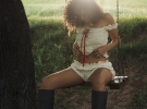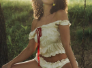 Цього разу зірка знялась у саду й на полі. Перед камерами постала в білому комплекті, який складався з топа й шортів.