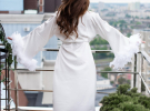 Перед камерою постала в прозорій білизні та шовковому халаті з пір'ям.