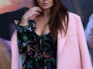 Образ доповнила пудрово-рожевим піджаком, розпущеним волоссям і вишуканими прикрасами.