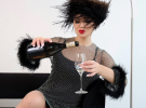 На кадрах, опублікованих в Instagram, зірка позувала в студії на дивані. В руках тримала келих ігристого.