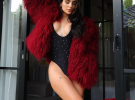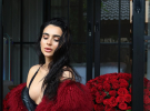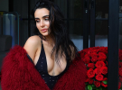 Образ доповнила червоною екошубою, розпущеним волоссям і мінімалістичними прикрасами.