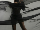 Перед камерою постала в ультракороткій прозорій сітчастій чорній сукні з глибоким декольте та у комбінації з білизною, яка підкреслила її ідеальну фігуру.