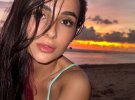 Зірка позувала в тонкому купальнику на тлі океану. На деяких фото, опублікованих в Instagram, артистка засвітила зону бікіні.