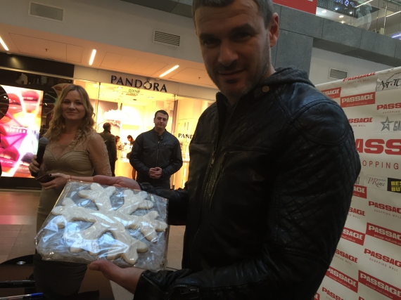 Співаку Арсену Мірзояну після концерту у Дніпрі шанувальники подарували карамельну сніжинку. Солодкий презент такий самий, як на обкладинці його альбому "Паперовий сніг".
