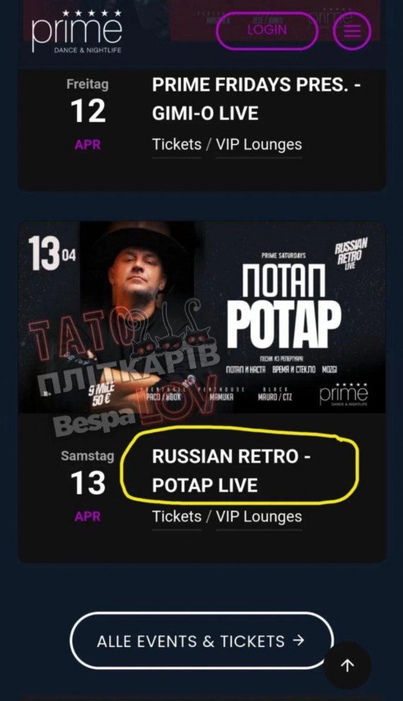 Більше того, в афіші вказано, що Потап - "артист російського ретро".