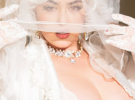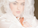 На фото - біла мереживна білизна, шовкова накидка в тон, фата нареченої та біла перука.