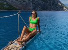Дружина голкіпера "Динамо" Дениса Бойка Валерія захопила мережу світлинами в бікіні. Постала в надвідвертому зеленому купальнику й леопардовій накидці.