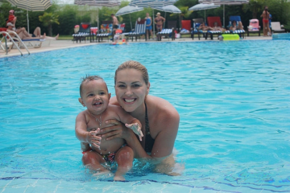 "На все літо приїхали. До Києва тільки у вересні повернемося. Відпочиваємо поруч з Ялтою, біля Ластівчиного гнізда, в готелі Palmira Palace", - розповіла у коментарі Gazeta.ua плавчиня, додавши, що проводять час разом з бабусею і племінником.