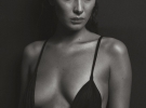 Красуня позувала у відвертих позах на чорно-білих фото. В кадрі Белла приміряла Prada, Haider Ackermann та Chloé. А на одному фото красуня лише у бюстьє Alexander McQueen
